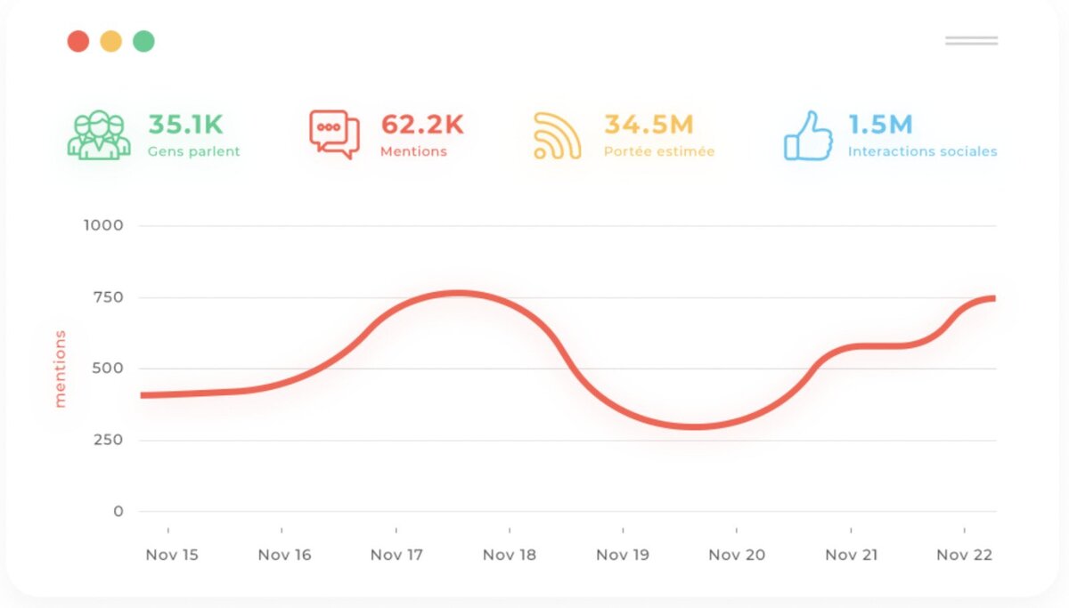 Digimind is another example of a social media analytics tool complete with social media listening and influencer marketing tools.