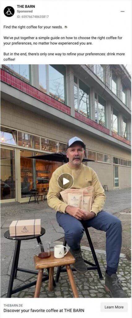 Here’s an example of a Facebook ad (yes, an ad – don’t forget, even your ads on social media can be helpful) by the Berlin-based coffee roaster The Barn, with a quick guide to choosing beans from their online selection. (Because what do you do if you don’t have a barista to ask in front of you?)