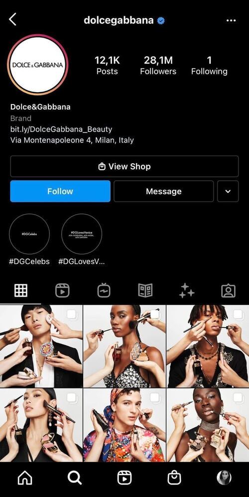 With the right product photos or videos, not only can you showcase your product line to encourage impulse buying, but you can also improve customer experience as it helps online shoppers find products that can solve their problems. Check out a good example of a storefront from Dolce & Gabbana: