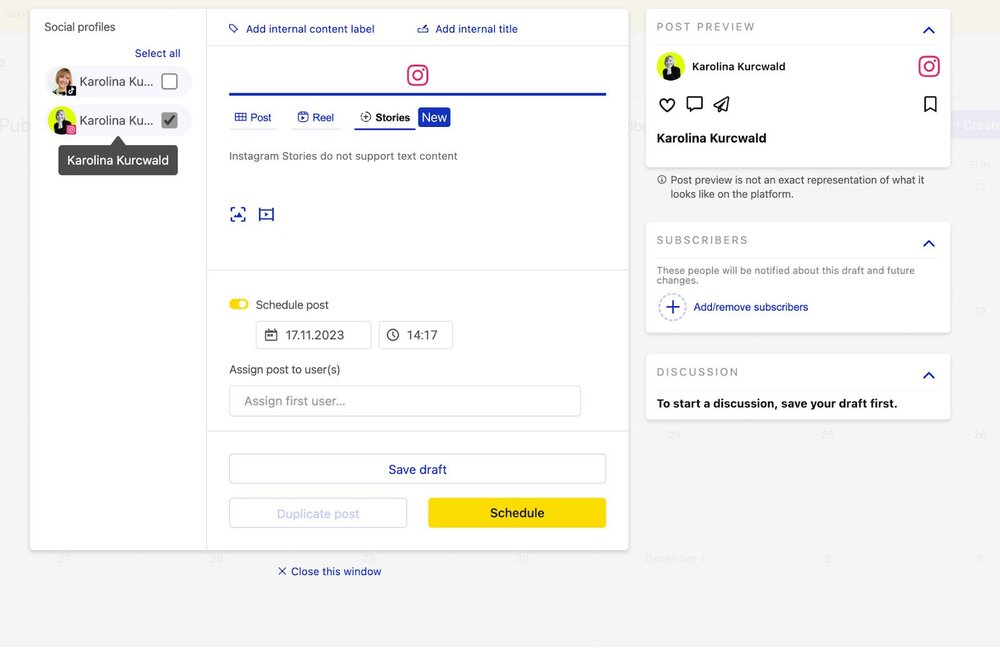 Aside from scheduling your Instagram Stories, Reels, and feed posts (including carousels), NapoleonCat will also let you: