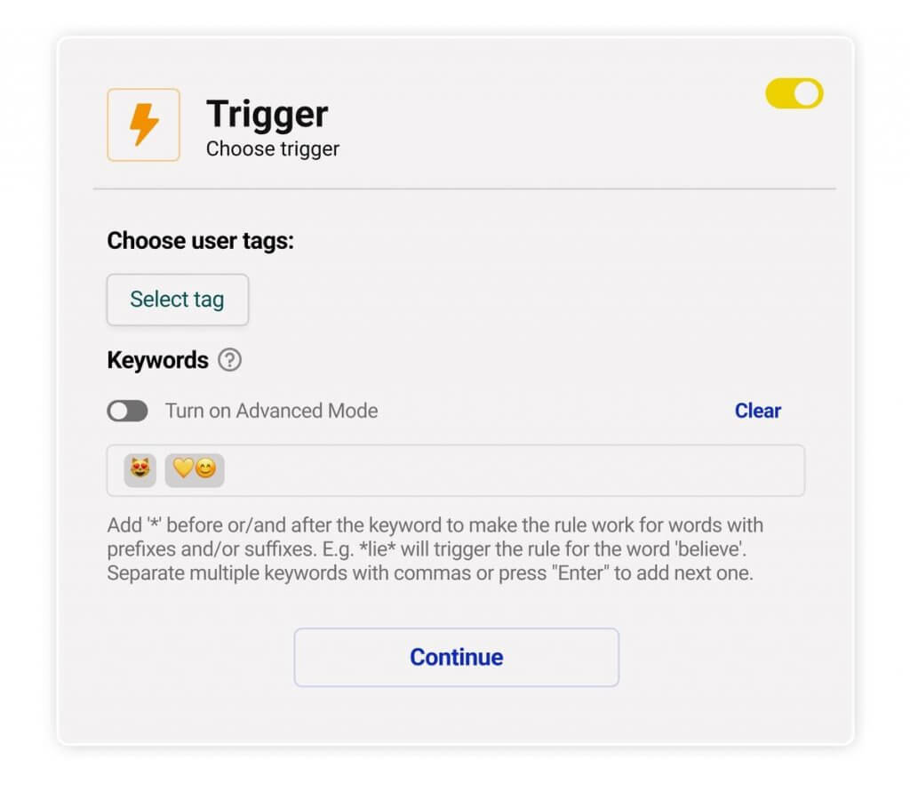 - You can create automatic reactions (aka rules) that are activated by specific triggers, e.g., keywords.