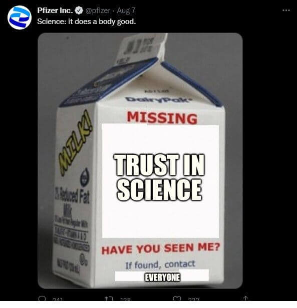Pfizer, for example, may have pissed off some people by standing up for science in this snarky tweet. (us pro-vaxxers and pro-science peeps won’t mind getting the Pfizer jab, though)