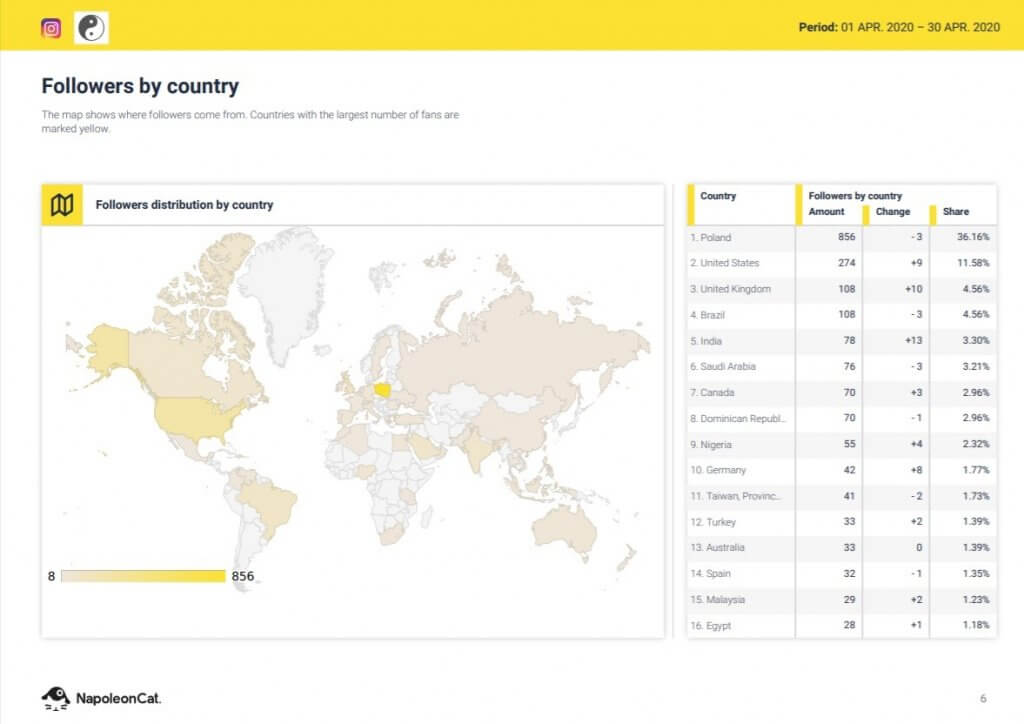 For each country of the world, you can check where you followers come from. Improve your targeting on Instagram – with an all-in-one social media tool.