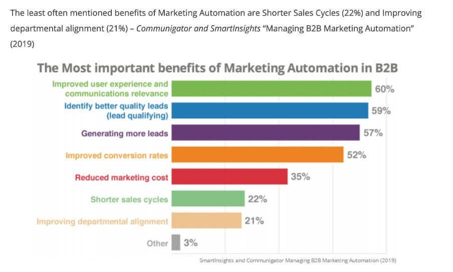 33. Marketing automation tools are also known for shortening sales cycles, as cited by 22% of survey respondents in a SmartInsights and Communigator study.