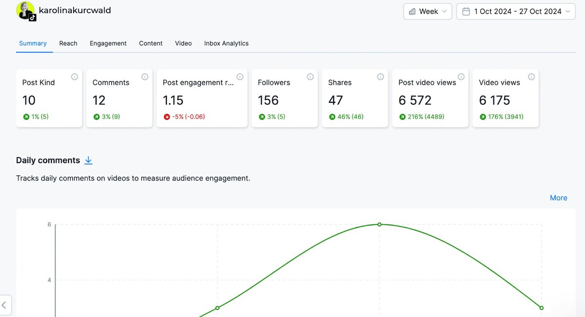 - Reach: Explaining how your content performs in terms of views and impressions, including details about location, timing, etc.