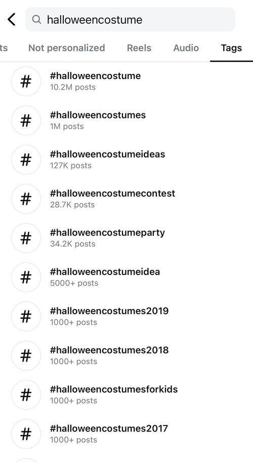 For example, let’s take the hashtag #halloween and combine it with the word costume.