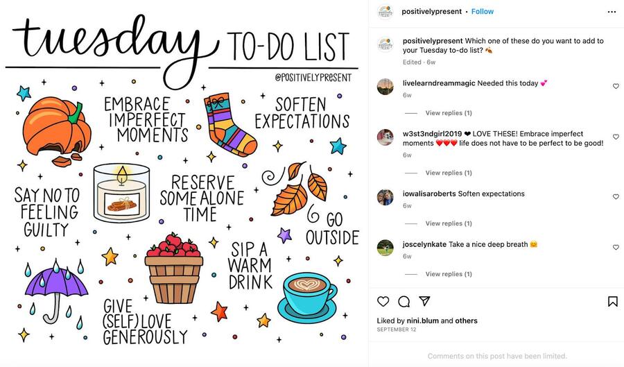 You can use this hashtag to share just about anything with your audience, but it will again be great for, well, your thoughts and some inspirational or helpful content. Lists are also great for this one (I can totally see them as thoughts.)